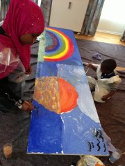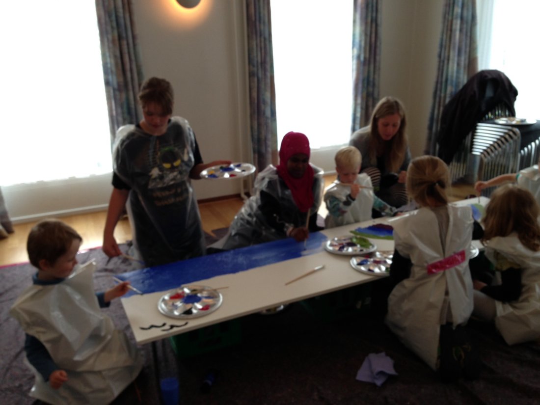 Børnene i StoreGård MALER et billede til porten