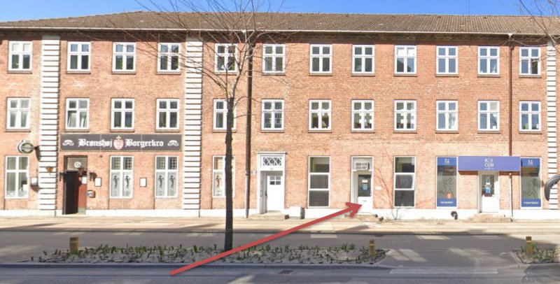Kontoret ligger imellem Kaiser Sport og Brønshøj Borgerkro.